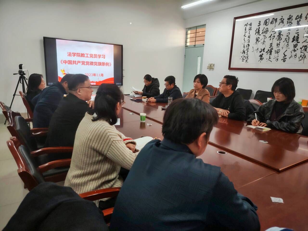 11月23日下午,永乐高131net在西校区10#B507组织全体教工党员学习《中国共产党党徽党旗条例》,党委书记季昌伟主持此次会议,全体教工党员参加会议。