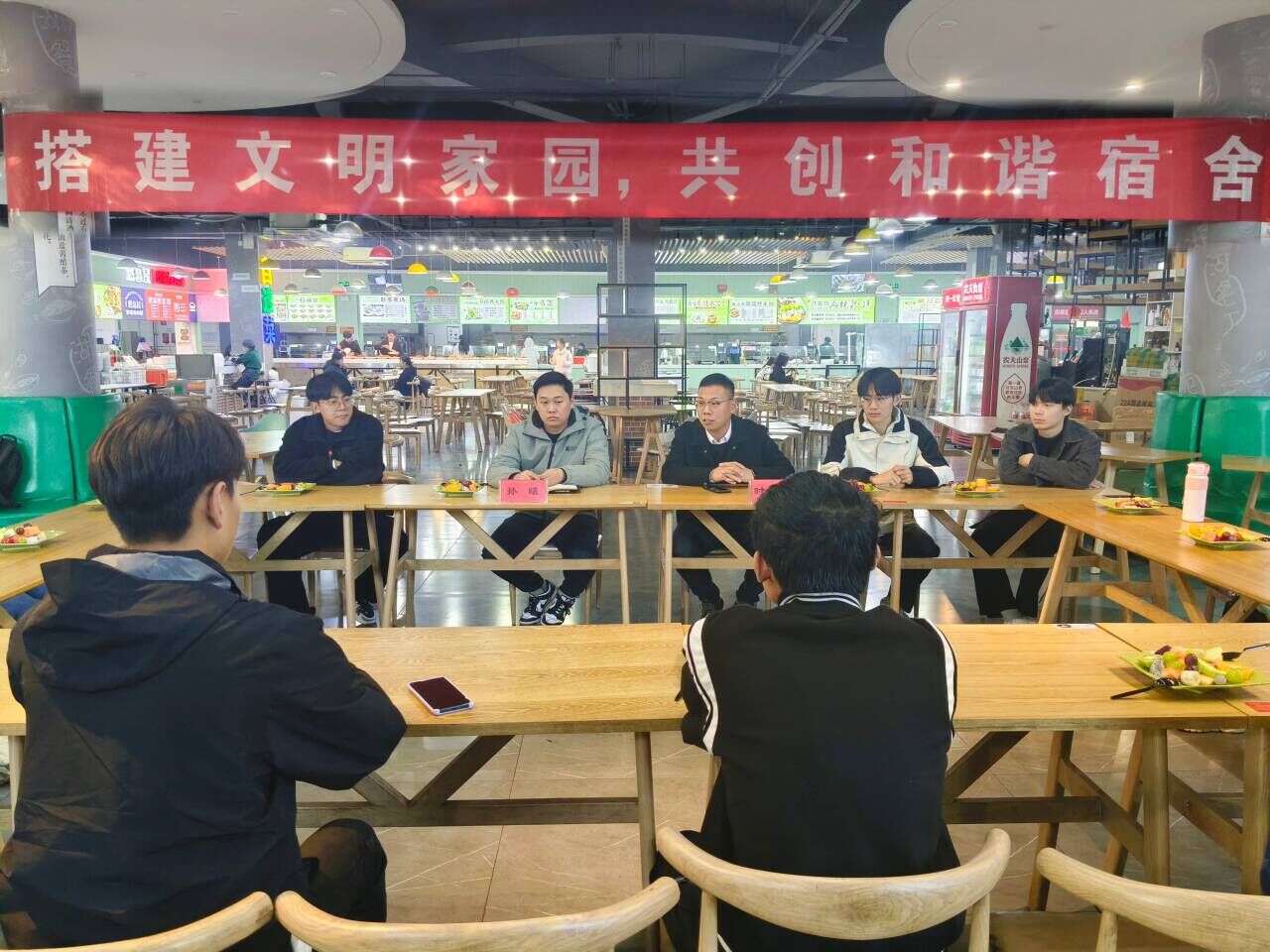 11月17日,永乐高131net于西校区湖苑餐厅二楼举办以“搭建文明家园,共创和谐宿舍”为主题的宿舍管理餐厅沙龙师生座谈会,永乐高131net辅导员孙曦、时林超出席此次座谈会,永乐高131net2021级、2022级部分学生参加此次座谈会。