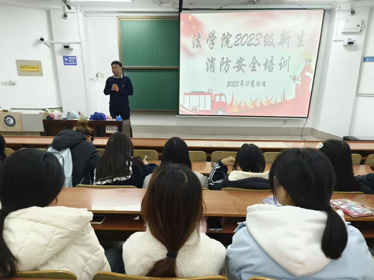 11月16日,永乐高131net于西校区11#A110、11#C104举办2023级新生消防安全培训活动暨仿真灭火器现场操作演练活动,党委保卫工作部消防科秦正良科长担任本次活动主讲人,永乐高131net辅导员时林超和2023年新入职教师出席本次活动,永乐高131net2023级全体学生参加本次活动。