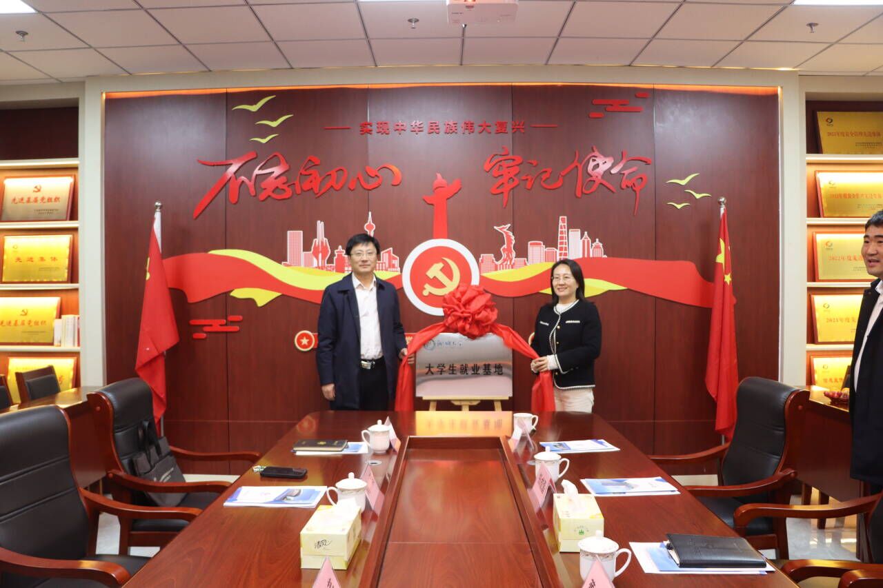 双方就互联互通、共建共享合作机制进行洽谈,明确基地发展定位,刘洁同郑成磊代表双方签署大学生实践教学基地和就业基地协议书,并顺利举行授牌仪式。