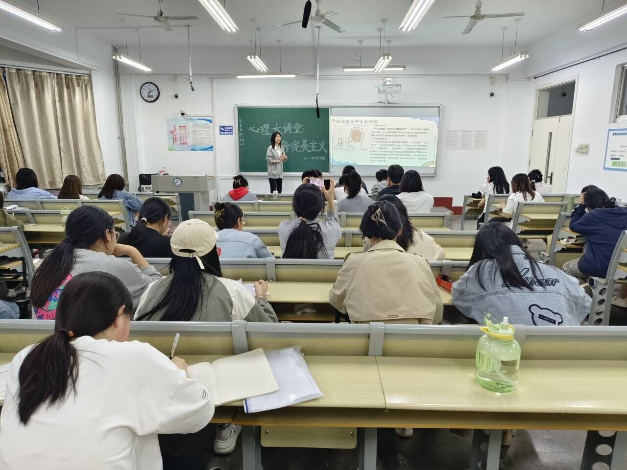 高琳瑀以帮助在场学员正确认识“完美主义”这一心理问题为出发点,分别从“什么是完美主义”“完美主义的影响”“如何破除完美主义”三个方面展开本次课程内容。高琳瑀结合自身生活经历列举自我要求型、要求他人型等多种完美主义的常见类型和表现,帮助学员加深对完美主义的理解,进一步引导其明晰自我认知,明确未来规划。在交流讨论环节,高琳瑀针对在场学员的疑惑着重分析当代青年所面临的完美主义问题及如何破除完美主义枷锁,并分享“设定合理目标”“学会放松自己”等破除完美主义的实用性方法,希望全体学员可以端正心态并积极地探索适合自己的解决办法,在场学员纷纷表示要提高自身对心理健康的重视程度并提升自我心理调控能力,在生活中和学习中打破完美主义的枷锁,以更加开放包容的心态迎接生活中的机遇和挑战。
