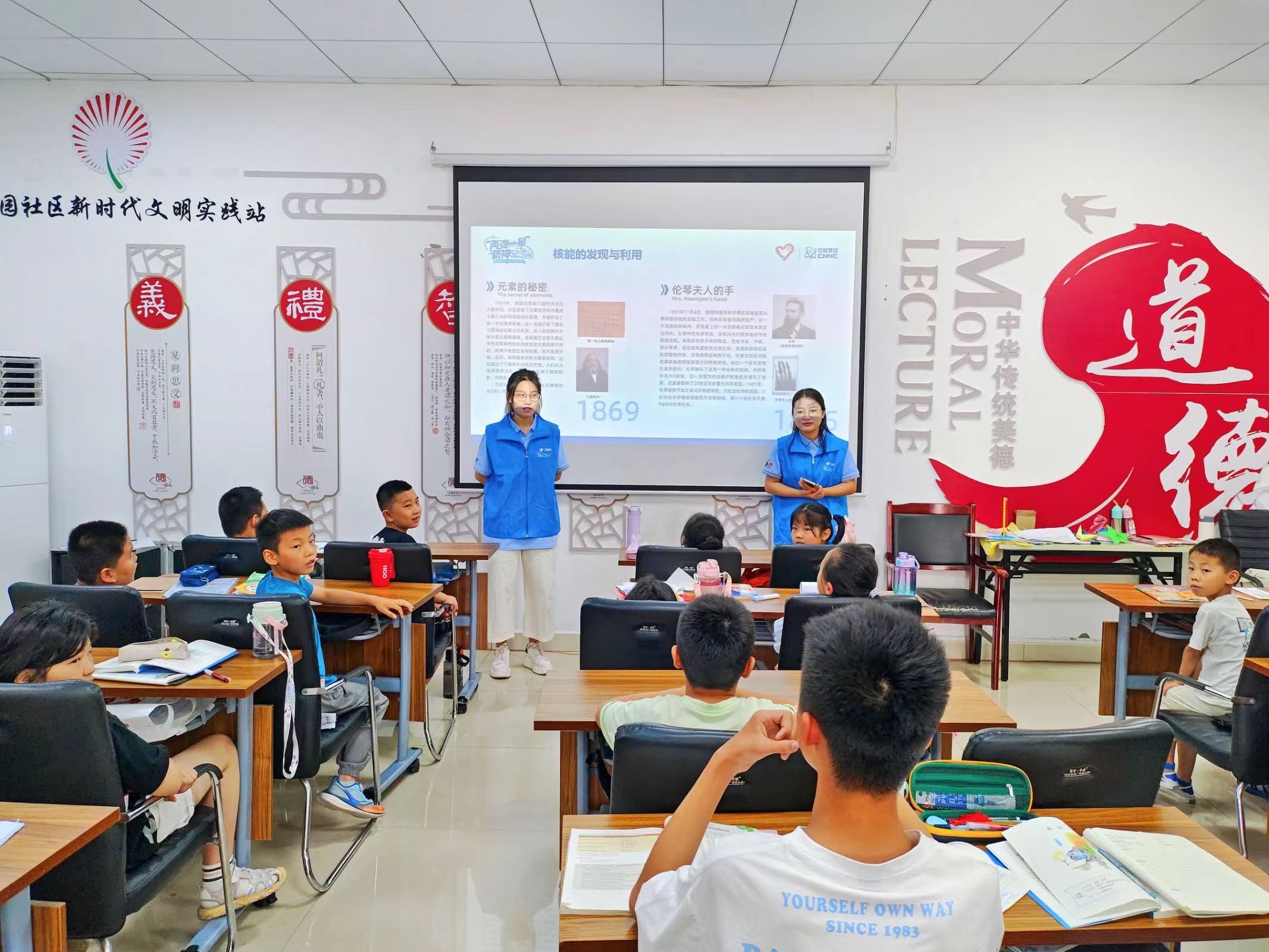 7月15日,聊城大学“童心之翼——七彩筑梦”志愿团前往柳园社区举办“追寻光辉足迹,传承两弹一星精神”宣讲活动,铭记“两弹一星”历史,传播“两弹一星”精神。