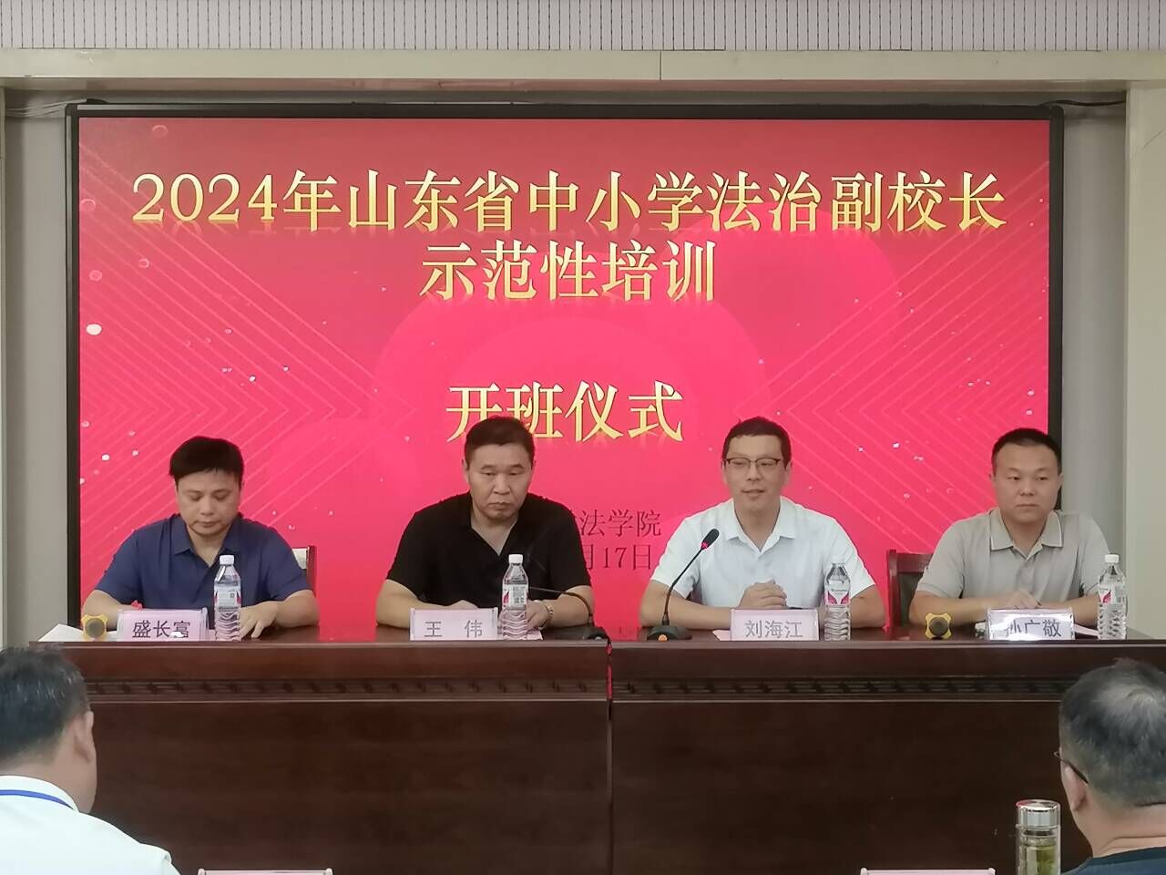 8月17日,2024年山东省中小学法治副校长培训班顺利开班,聊城大学继续教育学院院长王伟,永乐高131net副院长刘海江,培训班教师代表、聊城市莘县莘州中学法治副校长孙广敬出席开班典礼,聊城大学永乐高131net法学系系主任盛长富主持本次开班典礼。