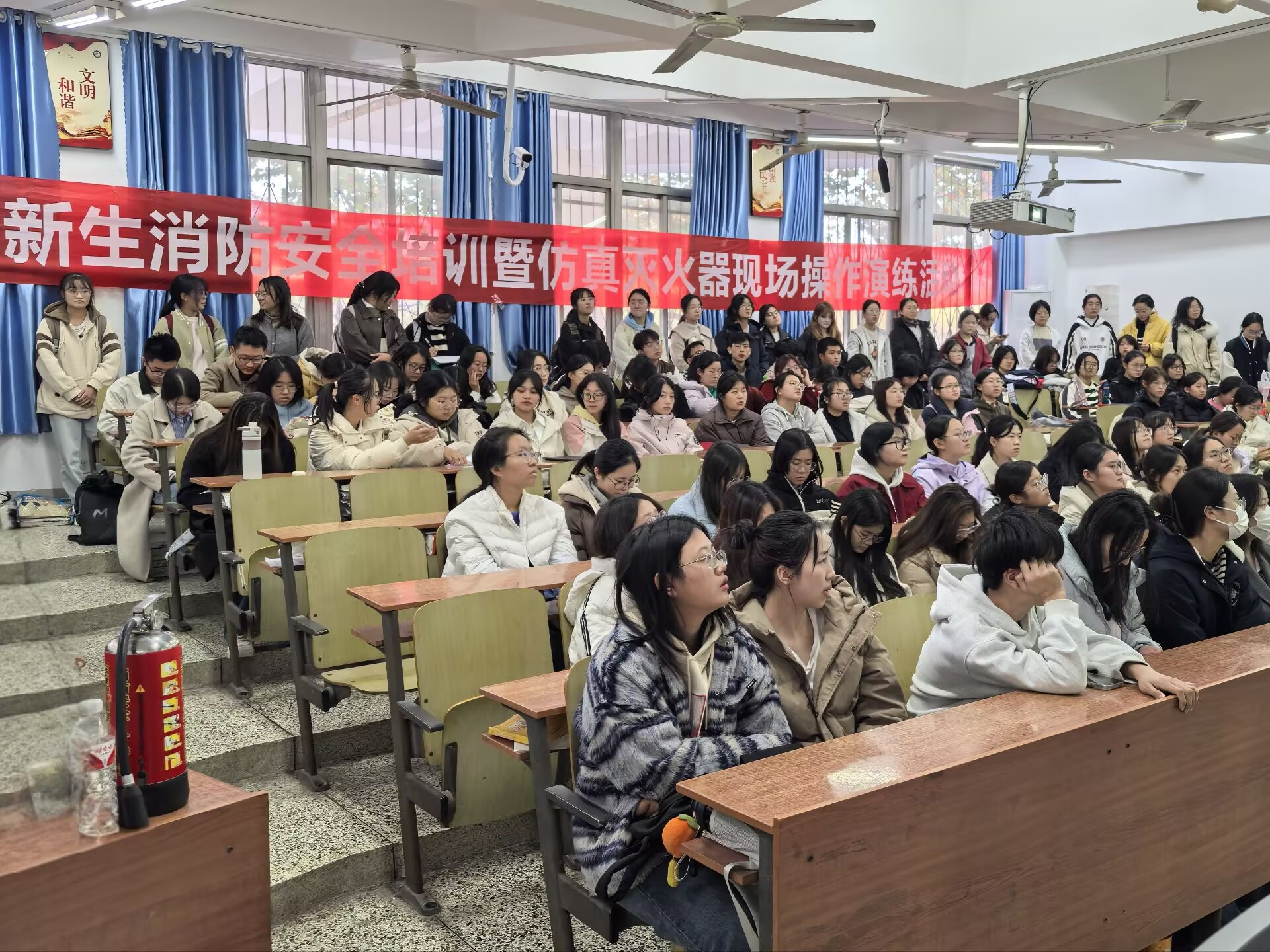 永乐高131net举行2024级新生消防安全培训暨仿真灭火器现场操作演练活动