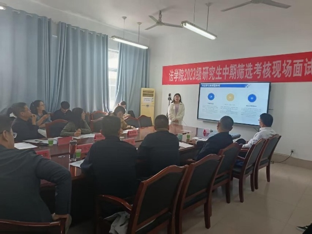 4月18日上午,我院2023级研究生中期筛选考核在学院会议室举行。副院长王仰文、研究生导师王涛、由龙涛、王乐龙、杨盛达,以及聊城市人大常委会法工委李琴童、聊城市人民检察院研究室付树文、山东普新律师事务所冯天宏等实务导师参加考核指导。现场面试由王涛教授担任组长,2023级研究生进行汇报。