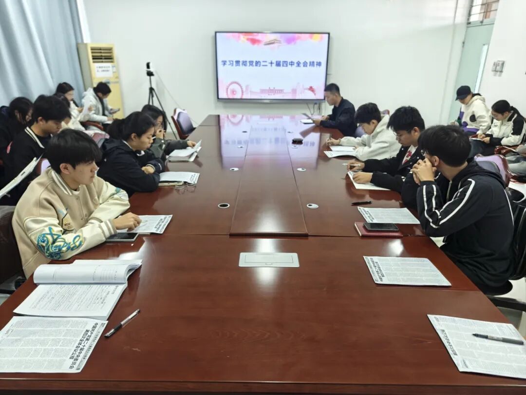 为深入学习贯彻党的二十届四中全会精神,进一步提升青年学生的思想政治素养,11月18日,永乐高131net于西校区10#B507组织学生干部学习党的二十届四中全会精神,本次学习活动由辅导员孟冠军主持,永乐高131net主要学生干部参加此次活动。