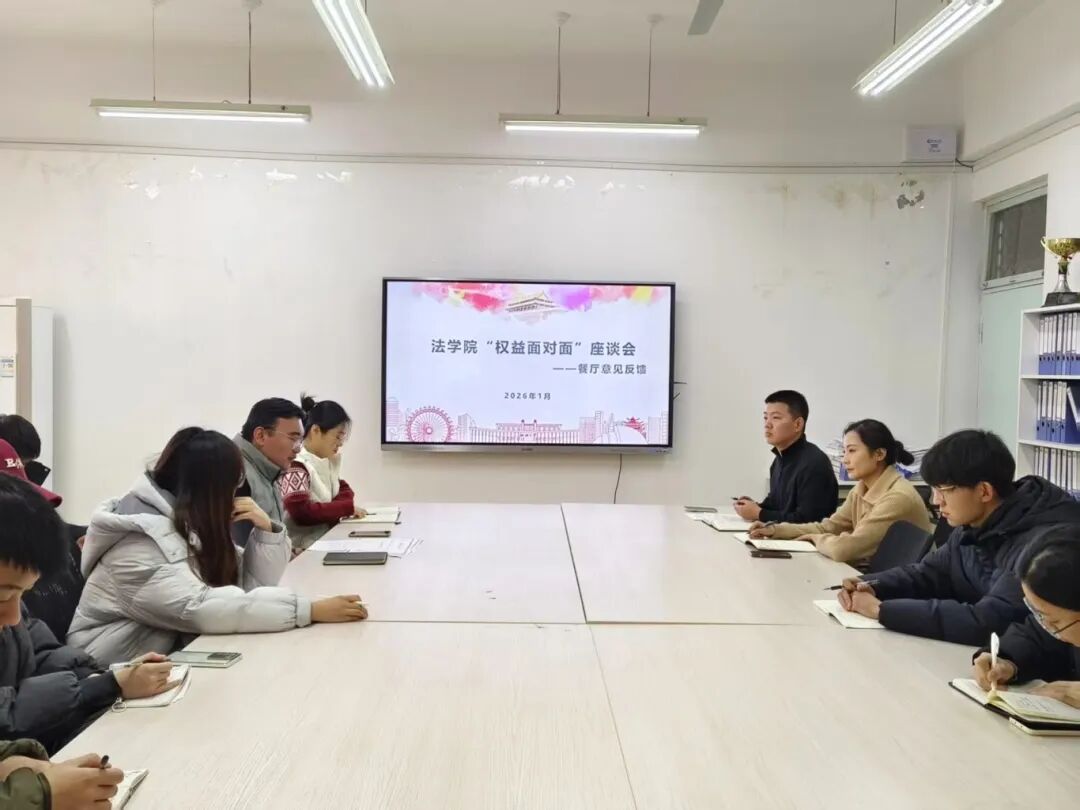 为更好地回复学生前期关于在校用餐消费权益的相关诉求,筑牢学生权益保障基础,1月5日,永乐高131net于西校区10#A510举办“权益面对面”交流座谈会,辅导员孟冠军、李宁、马丽亚,兼职辅导员陈星宇出席座谈,永乐高131net学生代表参与座谈会。