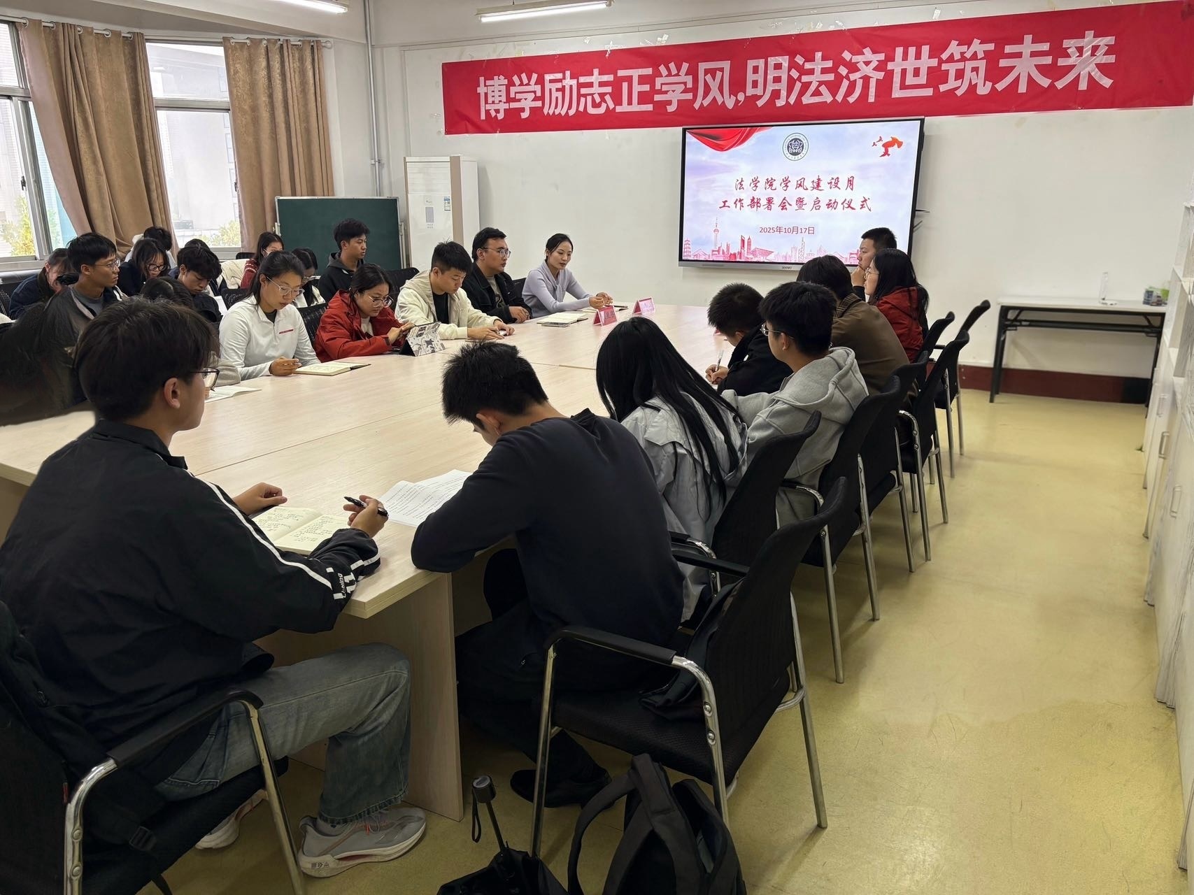 为深入贯彻落实立德树人根本任务,响应新时代法治人才培养要求,聊城大学永乐高131net聚焦学生成长成才核心需求,于 9-10 月集中开展了推免经验分享、“挑战杯” 赛事宣讲、宪法主题竞赛、学风建设推进、红色研学及校情教育等一系列育人活动。活动覆盖 2025 级至 2024 级全体本科生、入党积极分子、“青马工程” 学员及学生干部等重点群体,旨在通过多维度、全链条的育人举措,破解学生学业规划困惑、提升实践创新能力、筑牢思想信念根基,推动学院人才培养质量全面提升。
