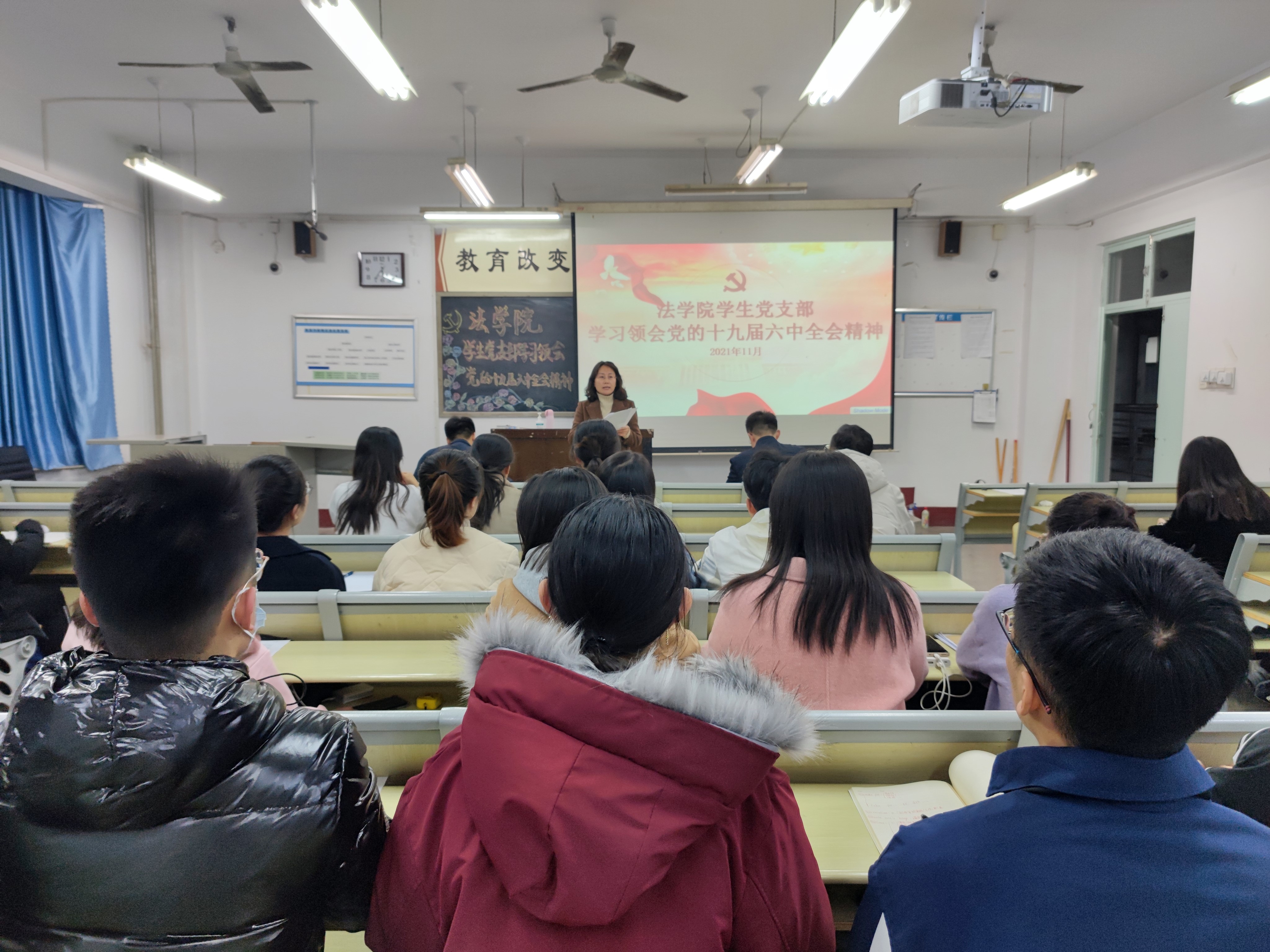 11月17日,永乐高131net教工党支部和学生党支部组织全体成员于西校区10#B507、10#C523学习党的十九届六中全会精神。会议由教工党支部书记王仰文、学生党支部书记刘洁主持。