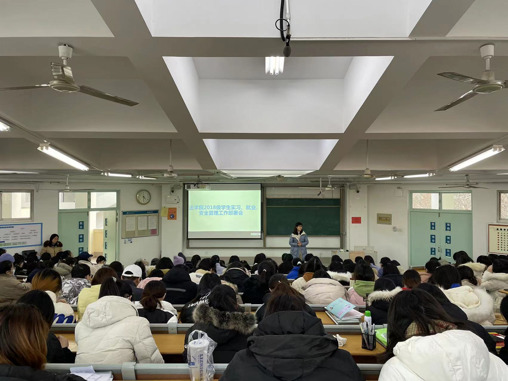 12月27日,永乐高131net于西校区11号楼C-310召开全体2018级毕业生实习、就业、安全管理工作部署会,对研究生考试结束后一段时间内2018级学生的实习、就业、毕业论文等事务进行讲解与安排。学院法学系主任刘海江、团委辅导员刘凤芹、史仁扩等多位老师出席,大会由沈春燕主持。