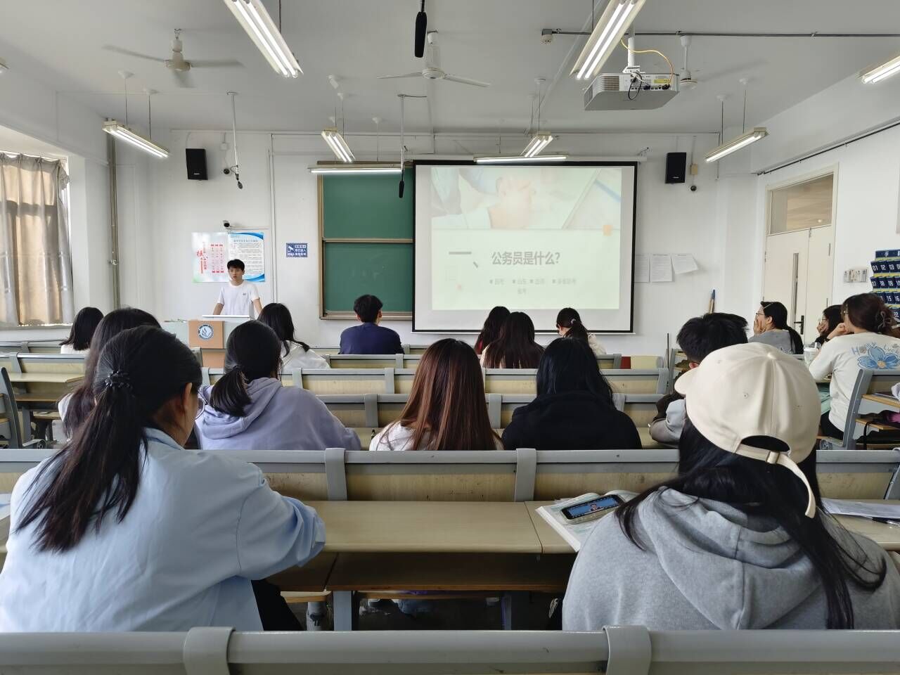 5月7日,永乐高131net于西校区10#C520开展以“公务员招考指导”为主题的青马工程培训课程,永乐高131net2020级学生李锋担任本次培训的主讲人,2024年永乐高131net青马工程基础培训班全体成员参与本次培训。