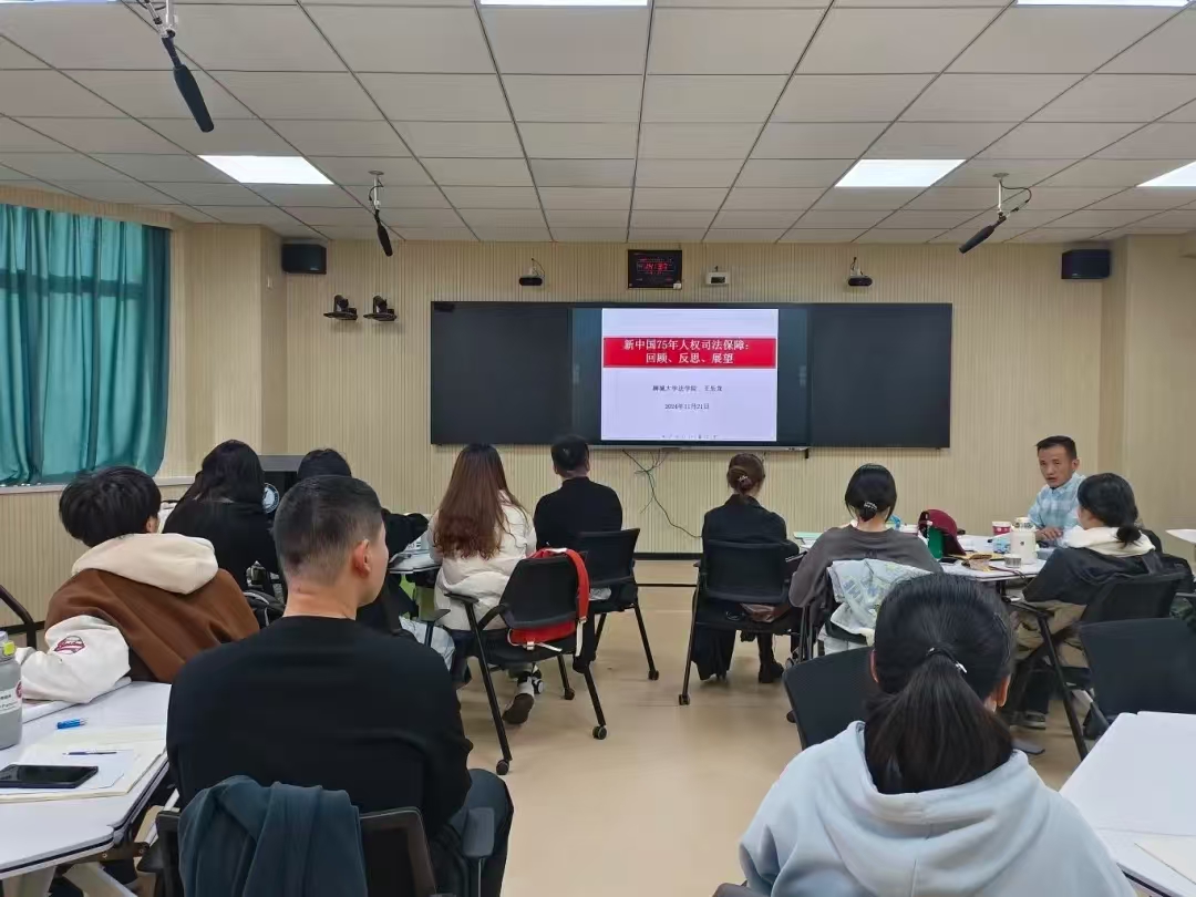 为增强研究生的法律思维,开拓学术视野,11月21日,永乐高131net于西校区10#A520举办第四十五期“湖畔书谭”学术讲座,永乐高131net副教授王乐龙担任主讲人,作题为“新中国75周年人权司法保障:回顾、反思、展望”的学术讲座,永乐高131net全体研究生参加。