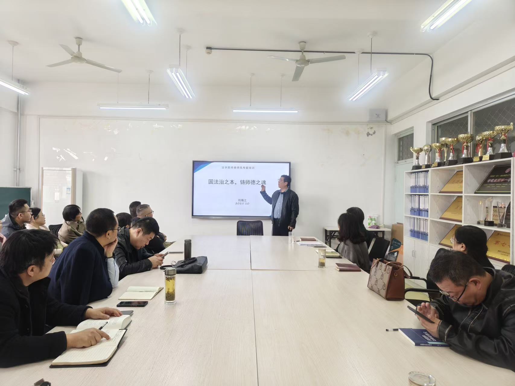 为切实加强学院师德师风建设,提升教师职业道德素养与育人能力,近日,按照聊城大学师德建设教育宣传月的要求,永乐高131net在会议室举办了的师德师风专题讲座,学院副院长刘海江教授做了题为《固法治之本,铸师德之魂》的报告,全体教工参加了此次讲座。