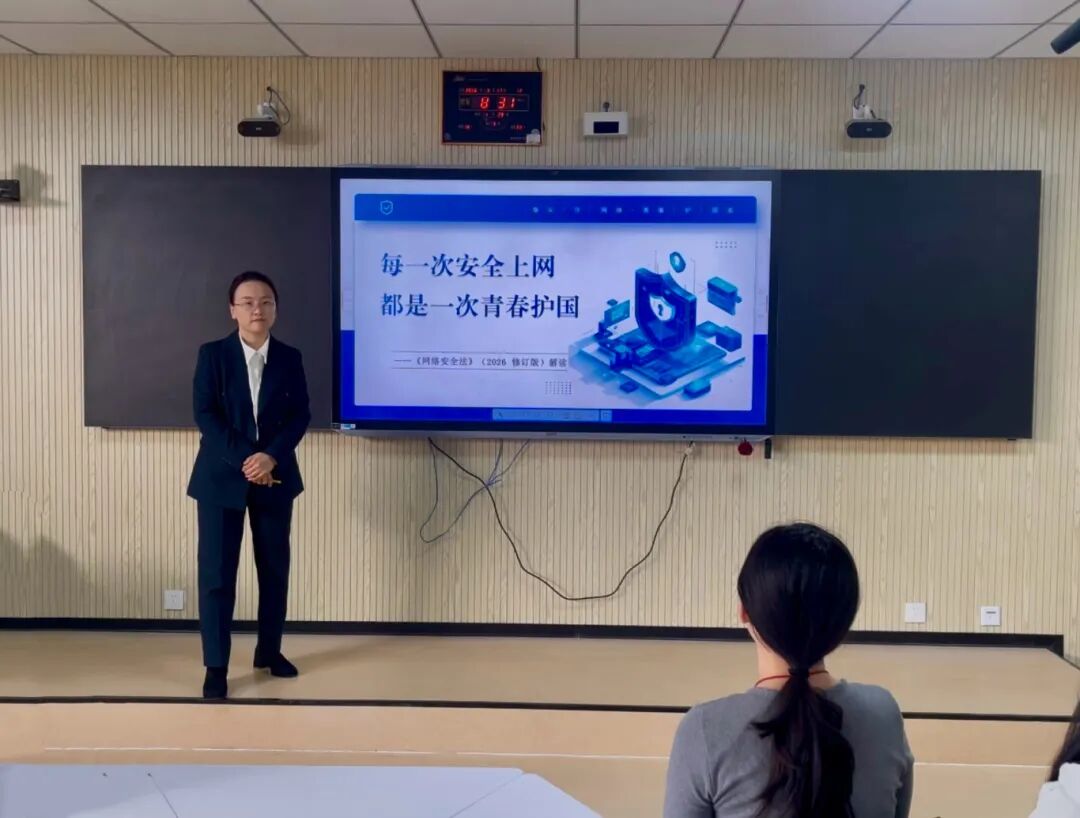 随后,李景玲着重指出,网络并非法外之地,任何网络行为都应当严守法律底线和公序良俗。她通过列举真实案例,让学生们直观地认识到网络违法违规行为的严重后果,提醒学生们遵循正确的用网准则,引导学生将依法用网、安全用网的理念内化于心、外化于行,从而提升自身的网络安全防范能力与法治素养。