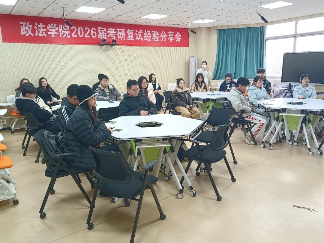 3月16日,政永乐高131net于西校区10#A520组织举办2026届考研复试经验分享会。党委副书记、副院长刘洁出席本次活动,辅导员孟冠军担任主持,政永乐高131net部分学生参加此次分享会。