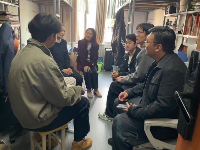 为深入掌握学生思想动态,切实保障学生工作平稳有序推进,3月27日,学院党委副书记、副院长刘洁带领辅导员马丽亚及兼职辅导员陈星宇,走进学生宿舍开展走访调研工作。